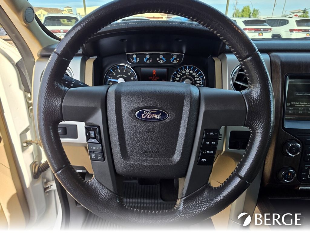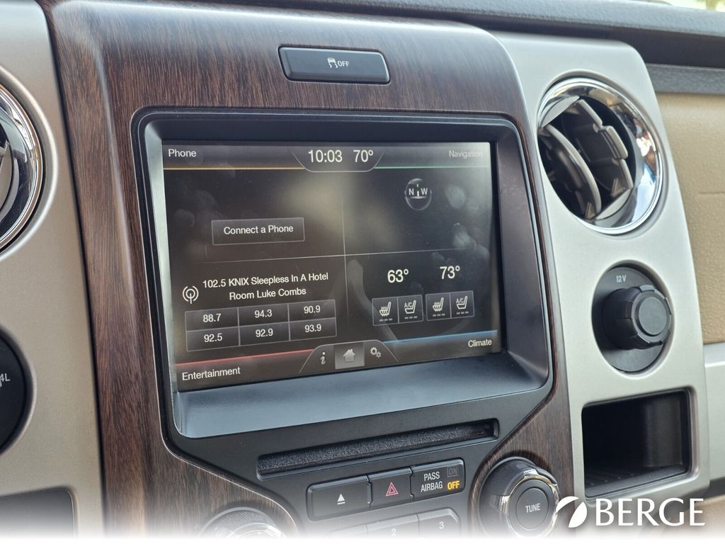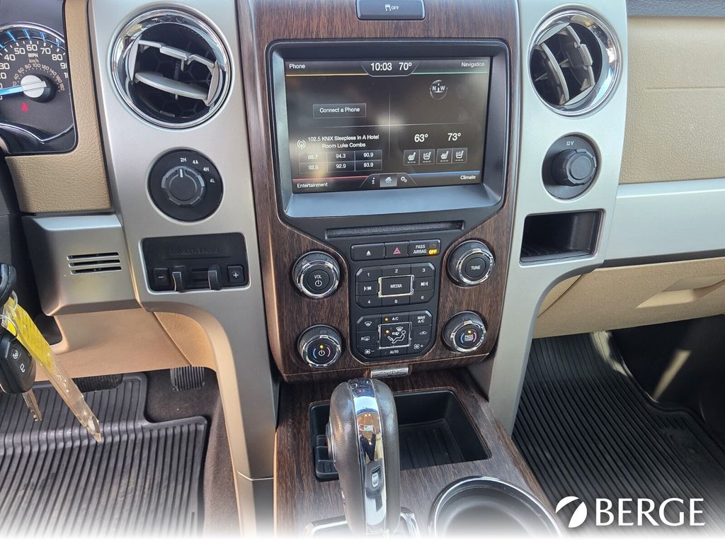 Serving The Valley For Over 40 Years! This Ford F-150 is equipped with the following features: Equipment Group 501A Mid, GVWR: 7,350 lbs Payload Package, Lariat Chrome Package (18" Chrome-Clad Aluminum Wheels, 6" Chrome Angular Step Bars, Body-Color Door Handles w/Chrome Strap, Chrome Exhaust Tip, and Heated Power Exterior Mirrors w/Memory), 4WD, 18" Bright Aluminum Wheels, 4 Speakers, 4-Wheel Disc Brakes, ABS brakes, Adjustable pedals, Air Conditioning, All-Weather Rubber Floor Mats, Alloy wheels, AM/FM radio: SiriusXM, Auto-dimming door mirrors, Auto-dimming Rear-View mirror, Automatic temperature control, Bumpers: chrome, CD player, Compass, Delay-off headlights, Driver door bin, Driver vanity mirror, Dual front impact airbags, Dual front side impact airbags, Electronic Stability Control, Front anti-roll bar, Front Center Armrest w/Storage, Front dual zone A/C, Front fog lights, Front reading lights, Front wheel independent suspension, Fully automatic headlights, Heated door mirrors, Heated front seats, Illuminated entry, Leather steering wheel, Leather-Trimmed 40/20/40 Front Seat, Low tire pressure warning, Memory seat, Navigation, Occupant sensing airbag, Outside temperature display, Overhead airbag, Overhead console, Panic alarm, Passenger door bin, Passenger vanity mirror, Pedal memory, Power door mirrors, Power driver seat, Power passenger seat, Power steering, Power windows, Radio data system, Radio: AM/FM Stereo/Clock/Single-CD, Rear reading lights, Rear seat center armrest, Rear step bumper, Rear window defroster, Remote keyless entry, Security system, SiriusXM Satellite Radio, Speed control, Speed-sensing steering, Split folding rear seat, Spray-In Bed Liner (Pre-Installed), Steering wheel mounted audio controls, SYNC w/MyFord Touch, Tachometer, Tailgate Step, Tilt steering wheel, Traction control, Trip computer, Turn signal indicator mirrors, and Variably intermittent wipers.