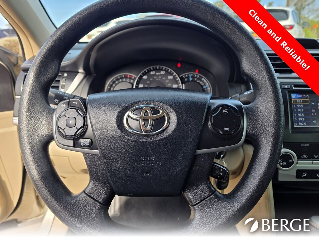 Serving The Valley For Over 40 Years! This Toyota Camry is equipped with the following features: Ivory Cloth, 4-Wheel Disc Brakes, 6 Speakers, 6.5J x 16" Steel Wheels w/Covers, ABS brakes, Air Conditioning, AM/FM radio, Brake assist, Bumpers: body-color, CD player, Delay-off headlights, Driver door bin, Driver vanity mirror, Dual front impact airbags, Dual front side impact airbags, Electronic Stability Control, Fabric Seat Trim, Four wheel independent suspension, Front anti-roll bar, Front Bucket Seats, Front Center Armrest, Front reading lights, Fully automatic headlights, Illuminated entry, Knee airbag, Low tire pressure warning, Occupant sensing airbag, Outside temperature display, Overhead airbag, Overhead console, Panic alarm, Passenger door bin, Passenger vanity mirror, Power door mirrors, Power steering, Power windows, Radio: AM/FM/CD Player w/6.1" Touch Screen, Rear anti-roll bar, Rear seat center armrest, Rear side impact airbag, Rear window defroster, Remote keyless entry, Speed control, Speed-sensing steering, Split folding rear seat, Steering wheel mounted audio controls, Tachometer, Telescoping steering wheel, Tilt steering wheel, Traction control, Trip computer, and Variably intermittent wipers.