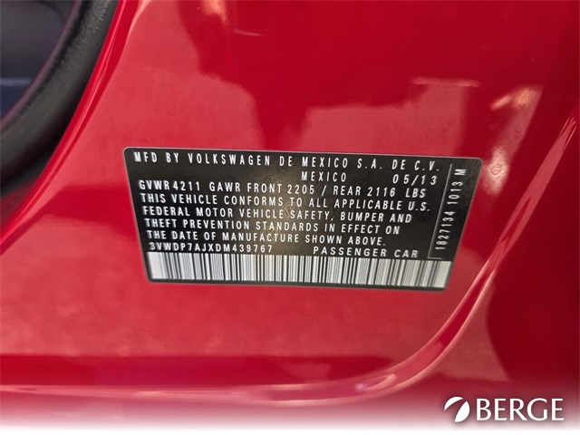 - VIN : 3VWDP7AJXDM439767