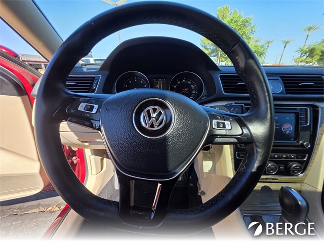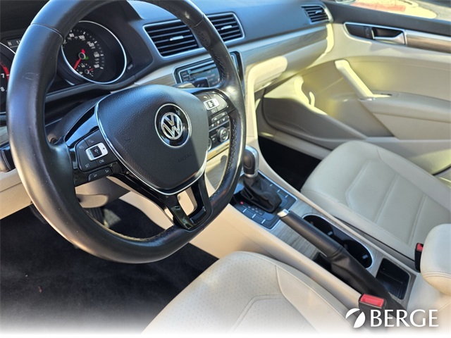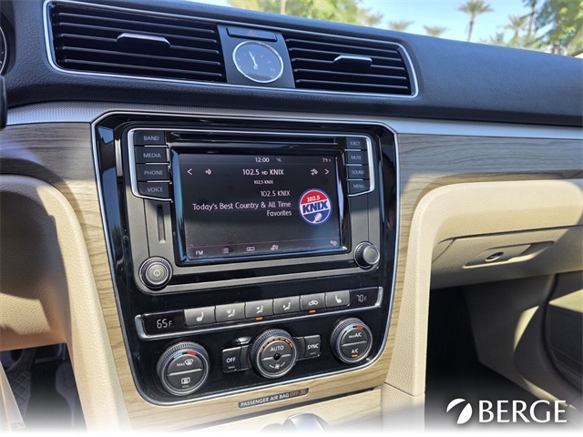 Serving The Valley For Over 40 Years! This Volkswagen Passat is equipped with the following features: Cornsilk Beige W/Brown Premium Synthetic, 4-Wheel Disc Brakes, ABS brakes, Air Conditioning, Alloy wheels, AM/FM radio: SiriusXM, Automatic temperature control, Brake assist, Bumpers: body-color, CD player, Compass, Delay-off headlights, Driver door bin, Driver vanity mirror, Dual front impact airbags, Dual front side impact airbags, Electronic Stability Control, Emergency communication system: VW Car-Net, Exterior Parking Camera Rear, Four wheel independent suspension, Front anti-roll bar, Front Bucket Seats, Front Center Armrest, Front dual zone A/C, Front reading lights, Fully automatic headlights, Heated door mirrors, Heated Front Bucket Seats, Heated front seats, Illuminated entry, Leather Shift Knob, Leather steering wheel, Low tire pressure warning, Monster Mats Rubber Mat Kit (Set of 4), Occupant sensing airbag, Outside temperature display, Overhead airbag, Overhead console, Panic alarm, Passenger door bin, Passenger vanity mirror, Power door mirrors, Power driver seat, Power moonroof, Power steering, Power windows, Radio data system, Rear anti-roll bar, Rear reading lights, Rear seat center armrest, Rear window defroster, Remote keyless entry, Roadside Assistance Kit, Security Wheel Locks (Set of 4), Speed control, Speed-sensing steering, Split folding rear seat, Steering wheel mounted audio controls, Tachometer, Telescoping steering wheel, Tilt steering wheel, Traction control, Trip computer, Turn signal indicator mirrors, V-Tex Leatherette Seating Surfaces, Variably intermittent wipers, and Wheels: 17" Knoxville Alloy.