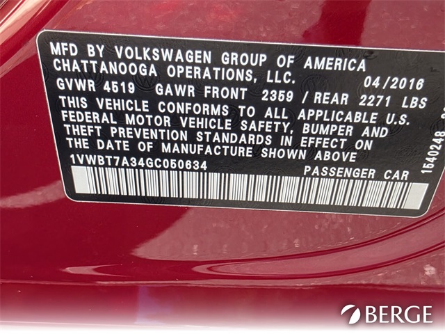 - VIN : 1VWBT7A34GC050634