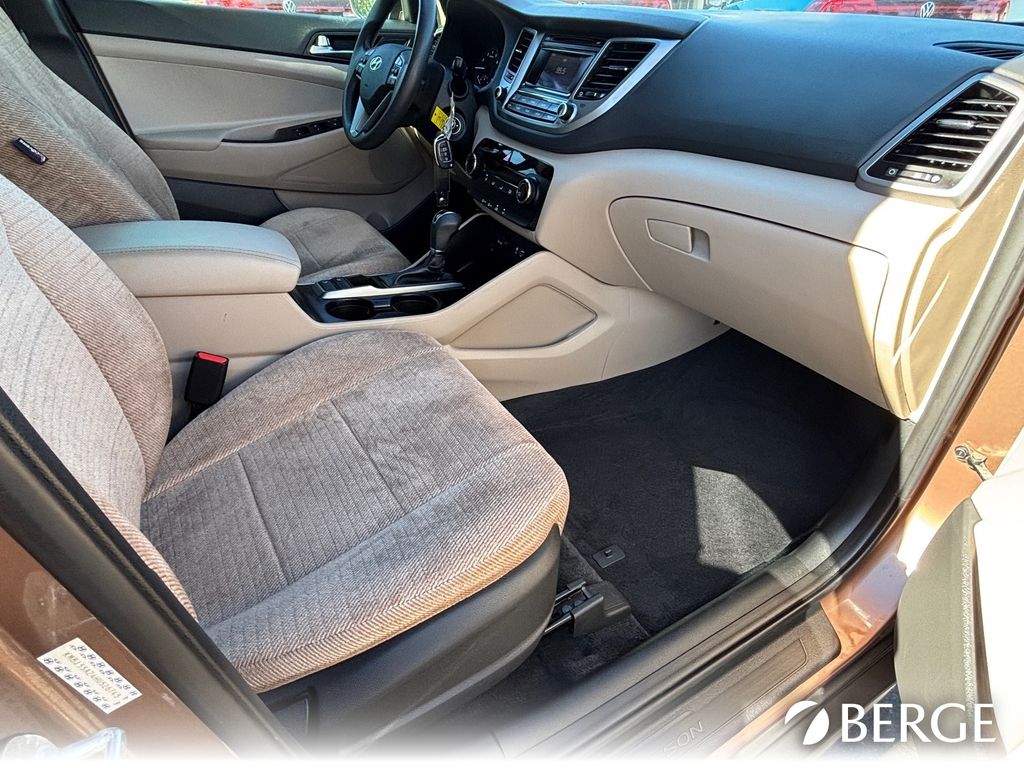 Serving The Valley For Over 40 Years! This Hyundai Tucson is equipped with the following features: Option Group 01, 17" Alloy Wheels, 4-Wheel Disc Brakes, 6 Speakers, ABS brakes, Air Conditioning, Alloy wheels, AM/FM radio: SiriusXM, AM/FM/CD/MP3 Audio System, Axle Ratio: 3.579, Brake assist, Bumpers: body-color, Cargo Cover, Cargo Net, Cargo Tray, Carpeted Floor Mats, CD player, Delay-off headlights, Driver door bin, Driver vanity mirror, Dual front impact airbags, Dual front side impact airbags, Electronic Stability Control, Exterior Parking Camera Rear, First Aid Kit, Four wheel independent suspension, Front anti-roll bar, Front Bucket Seats, Front Bucket Seats w/Power Driver's Seat, Front Center Armrest, Front fog lights, Front reading lights, Fully automatic headlights, Heated door mirrors, Illuminated entry, Leather Shift Knob, Low tire pressure warning, Mudguards, Occupant sensing airbag, Outside temperature display, Overhead airbag, Overhead console, Panic alarm, Passenger door bin, Passenger vanity mirror, Power door mirrors, Power driver seat, Power steering, Power windows, Rear anti-roll bar, Rear seat center armrest, Rear window defroster, Rear window wiper, Remote keyless entry, Roof rack: rails only, Security system, Speed control, Speed-sensing steering, Split folding rear seat, Spoiler, Steering wheel mounted audio controls, Tachometer, Telescoping steering wheel, Tilt steering wheel, Traction control, Trip computer, Turn signal indicator mirrors, Variably intermittent wipers, and YES Essentials Cloth Seat Trim.