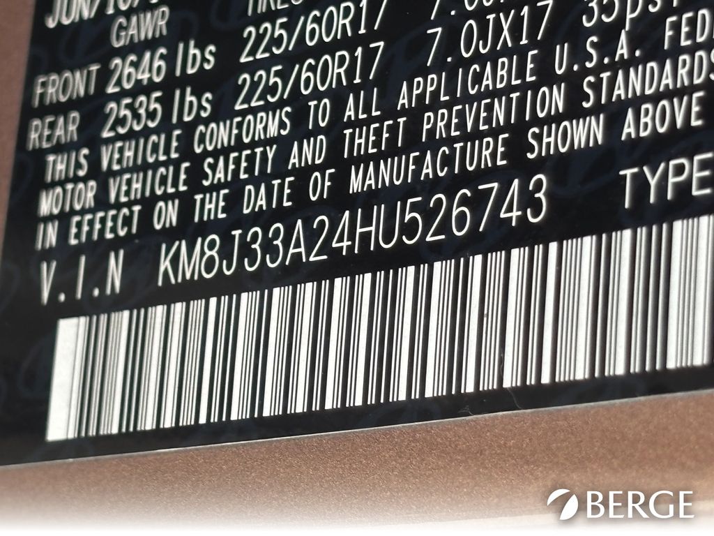- VIN : KM8J33A24HU526743