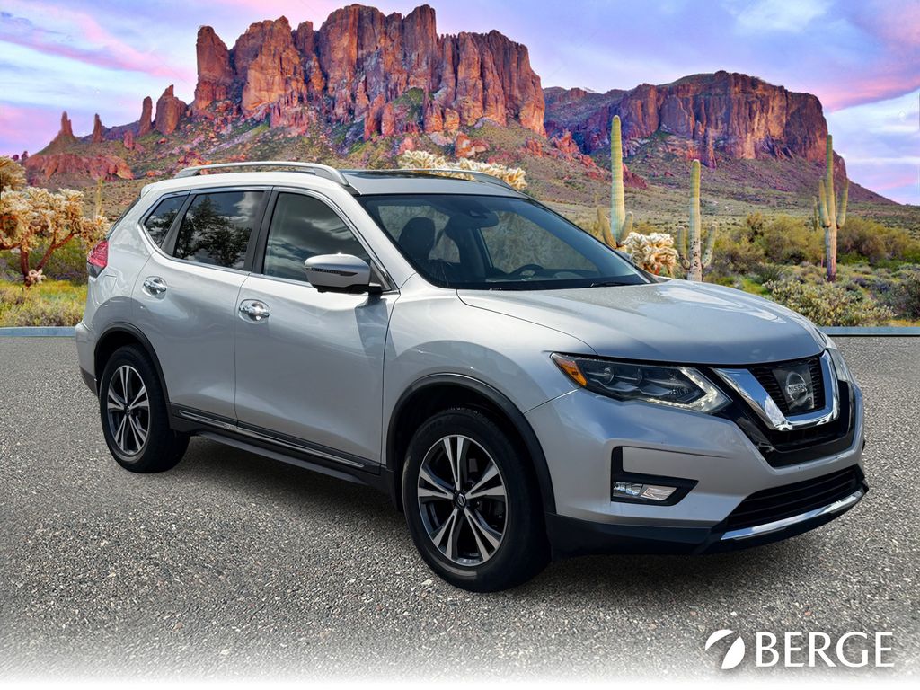 Serving The Valley For Over 40 Years! This Nissan Rogue is equipped with the following features: AWD, 4-Wheel Disc Brakes, 9 Speakers, ABS brakes, Air Conditioning, Alloy wheels, AM/FM radio: SiriusXM, Anti-whiplash front head restraints, Auto High-beam Headlights, Auto-dimming Rear-View mirror, Automatic temperature control, Black Splash Guards (Set of 4), Blind Spot Warning, Brake assist, Bumpers: body-color, CD player, Chrome Rear Bumper Protector, Delay-off headlights, Driver door bin, Driver vanity mirror, Dual front impact airbags, Dual front side impact airbags, Electronic Stability Control, Four wheel independent suspension, Front anti-roll bar, Front Bucket Seats, Front Center Armrest w/Storage, Front dual zone A/C, Front fog lights, Front reading lights, Fully automatic headlights, Garage door transmitter: HomeLink, Heated door mirrors, Heated front seats, Heated steering wheel, Illuminated entry, Leather Appointed Seat Trim, Leather Shift Knob, Low tire pressure warning, Memory seat, Navigation System, Occupant sensing airbag, Outside temperature display, Overhead airbag, Overhead console, Panic alarm, Passenger door bin, Passenger vanity mirror, Power door mirrors, Power driver seat, Power Liftgate, Power steering, Power windows, Quick Comfort Heated Front Bucket Seats, Radio data system, Rear anti-roll bar, Rear seat center armrest, Rear window defroster, Rear window wiper, Remote keyless entry, Retractable Cargo Cover, Roof rack: rails only, Security system, Speed control, Speed-sensing steering, Split folding rear seat, Spoiler, Steering wheel mounted audio controls, Tachometer, Telescoping steering wheel, Tilt steering wheel, Traction control, Trip computer, Turn signal indicator mirrors, and Variably intermittent wipers.