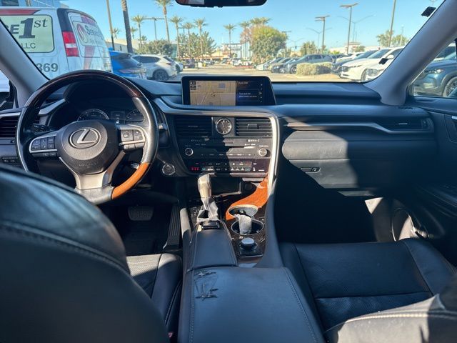 Serving The Valley For Over 40 Years! This Lexus RX is equipped with the following features: Black Artificial Leather, 3.329 Axle Ratio, 4-Wheel Disc Brakes, 9 Speakers, ABS brakes, Air Conditioning, Alloy wheels, AM/FM radio: SiriusXM, Anti-whiplash front head restraints, Auto High-beam Headlights, Auto-dimming Rear-View mirror, Automatic temperature control, Backup Monitor, Brake assist, Bumpers: body-color, CD player, Compass, Delay-off headlights, Distance pacing cruise control: All-Speed Dynamic Radar Cruise Control, Driver door bin, Driver vanity mirror, Dual front impact airbags, Dual front side impact airbags, Electronic Stability Control, Exterior Parking Camera Rear, Four wheel independent suspension, Front anti-roll bar, Front Bucket Seats, Front Center Armrest, Front dual zone A/C, Front fog lights, Front reading lights, Fully automatic headlights, Garage door transmitter: HomeLink, Heated door mirrors, Illuminated entry, Knee airbag, Leather Shift Knob, Leather steering wheel, Low tire pressure warning, NuLuxe Seat Trim, Occupant sensing airbag, Outside temperature display, Overhead airbag, Overhead console, Panic alarm, Passenger door bin, Passenger vanity mirror, Power door mirrors, Power driver seat, Power Liftgate, Power passenger seat, Power steering, Power windows, Radio data system, Radio: AM/FM/CD Lexus Display Audio, Rain sensing wipers, Rear anti-roll bar, Rear reading lights, Rear seat center armrest, Rear side impact airbag, Rear window defroster, Rear window wiper, Remote keyless entry, Security system, Speed control, Speed-sensing steering, Split folding rear seat, Spoiler, Steering wheel mounted audio controls, Tachometer, Telescoping steering wheel, Tilt steering wheel, Traction control, Trip computer, Turn signal indicator mirrors, Variably intermittent wipers, and Wheels: 18" x 8" 7-Spoke Aluminum.