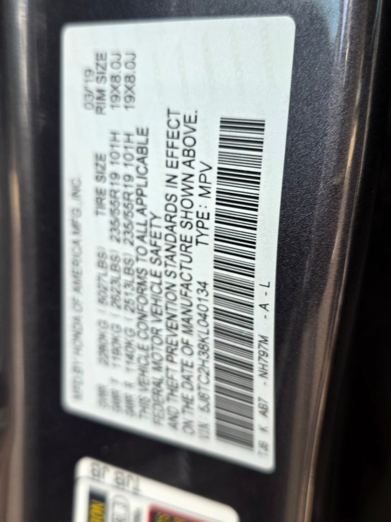 - VIN : 5J8TC2H38KL040134