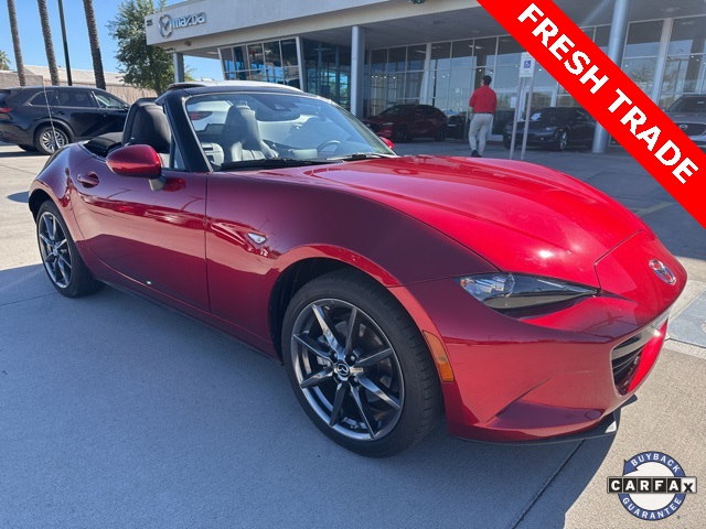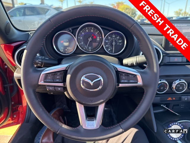 Serving The Valley For Over 40 Years! This Mazda MX-5 Miata is equipped with the following features: 4-Wheel Disc Brakes, 9 Speakers, ABS brakes, Air Conditioning, Alloy wheels, AM/FM radio: SiriusXM, AM/FM Sound System w/Navigation, Auto High-beam Headlights, Auto-dimming door mirrors, Auto-dimming Rear-View mirror, Automatic temperature control, BOSE Audio System, Brake assist, Bumpers: body-color, Convertible roof lining, Convertible roof wind blocker, Delay-off headlights, Driver vanity mirror, Dual front impact airbags, Dual front side impact airbags, Electronic Stability Control, Emergency communication system: MAZDA CONNECT, Exterior Parking Camera Rear, Four wheel independent suspension, Front anti-roll bar, Front Bucket Seats, Front Center Armrest, Fully automatic headlights, Garage door transmitter: HomeLink, Glass rear window, Heated door mirrors, Heated front seats, Illuminated entry, Leather Shift Knob, Leather Upholstery, Low tire pressure warning, MAZDA CONNECT Infotainment System, Navigation System, Occupant sensing airbag, Outside temperature display, Panic alarm, Passenger vanity mirror, Power door mirrors, Power steering, Power windows, Radio data system, Rain sensing wipers, Rear anti-roll bar, Rear window defroster, Reclining Heated Front Bucket Seats, Remote keyless entry, Soul Red Crystal Paint Charge, Speed control, Speed-sensing steering, Sport steering wheel, Steering wheel mounted audio controls, Tachometer, Telescoping steering wheel, Tilt steering wheel, Traction control, Trip computer, Variably intermittent wipers, and Wheels: 17" x 7" Dark Silver Aluminum Alloy.