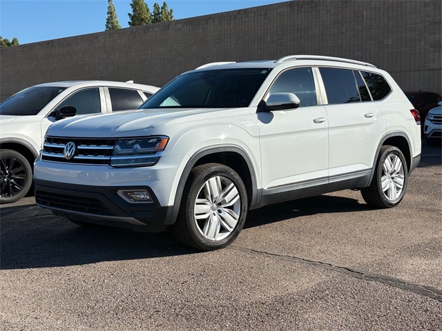 Serving The Valley For Over 40 Years! This Volkswagen Atlas is equipped with the following features: 18" 5-Spoke Wheels, 3.60 Axle Ratio, 3rd row seats: split-bench, 4-Wheel Disc Brakes, 8 Speakers, ABS brakes, Active Blind Spot Monitor, Air Conditioning, Alloy wheels, AM/FM radio: SiriusXM, Auto-dimming Rear-View mirror, Automatic temperature control, Brake assist, Bumpers: body-color, Compass, Delay-off headlights, Driver door bin, Driver vanity mirror, Dual front impact airbags, Dual front side impact airbags, Electronic Stability Control, Emergency communication system: VW Car-Net services (capabilities require enrollment or subscription), Exterior Parking Camera Rear, Forward collision: FCW w/Autonomous Emergency Braking mitigation, Four wheel independent suspension, Front anti-roll bar, Front Bucket Seats, Front Center Armrest, Front dual zone A/C, Front fog lights, Front reading lights, Garage door transmitter: HomeLink, Heated Comfort Front Bucket Seats, Heated door mirrors, Heated front seats, Heated steering wheel, Illuminated entry, Low tire pressure warning, Memory seat, Navigation System, Occupant sensing airbag, Outside temperature display, Overhead airbag, Overhead console, Panic alarm, Passenger door bin, Passenger vanity mirror, Power door mirrors, Power driver seat, Power Liftgate, Power moonroof, Power passenger seat, Power steering, Power windows, Radio data system, Radio: Discover Media 8.0" Touchscreen w/Nav, Rain sensing wipers, Rear air conditioning, Rear anti-roll bar, Rear reading lights, Rear seat center armrest, Rear window defroster, Rear window wiper, Remote CD player, Remote keyless entry, Roof rack: rails only, Security system, Speed control, Speed-sensing steering, Split folding rear seat, Spoiler, Standard Suspension, Steering wheel mounted audio controls, Tachometer, Telescoping steering wheel, Tilt steering wheel, Traction control, Trip computer, Turn signal indicator mirrors, V-Tex Leatherette Seating Surfaces, and Variably intermittent wipers.