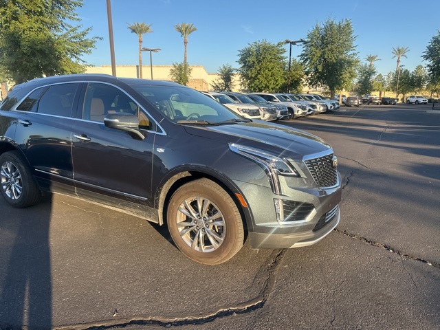 Serving The Valley For Over 40 Years! This Cadillac XT5 is equipped with the following features: Premium Luxury Package 1SC (Automatic Dual-Zone Climate Control, Automatic Emergency Braking, Dual Driver Info Center Display Gauge Cluster, Front & Rear Park Assist, HD Rear Vision Camera, Inside Rear-View Auto-Dimming Mirror, and Teen Driver), 155 Amp Alternator, 2-Way Power Driver Lumbar Control Seat Adjuster, 2-Way Power Passenger Lumbar Control Seat Adjuster, 3.47 Axle Ratio, 4-Wheel Disc Brakes, 4-Wheel Independent Suspension, 8 Speakers, ABS brakes, Air Conditioning, Alloy wheels, AM/FM radio: SiriusXM, Apple CarPlay/Android Auto, Audio memory, Auto High-beam Headlights, Auto-dimming door mirrors, Auto-dimming Rear-View mirror, Automatic temperature control, Bodyside moldings, Bose Premium 8-Speaker Audio System Feature, Brake assist, Bumpers: body-color, Cabin Filter (LPO), Compass, Delay-off headlights, Driver door bin, Driver vanity mirror, Dual front impact airbags, Dual front side impact airbags, Electronic Stability Control, Emergency communication system: OnStar and Cadillac connected services capable, Exterior Parking Camera Rear, Four wheel independent suspension, Front anti-roll bar, Front Bucket Seats, Front Center Armrest, Front dual zone A/C, Front reading lights, Fully automatic headlights, Garage door transmitter, Heated door mirrors, Heated Driver & Front Passenger Seats, Heated front seats, Heated steering wheel, Illuminated entry, Knee airbag, Leather Seating Surfaces w/Mini Perforated Inserts, Leather steering wheel, Low tire pressure warning, Memory seat, Occupant sensing airbag, Outside temperature display, Overhead airbag, Overhead console, Panic alarm, Passenger door bin, Passenger vanity mirror, Power door mirrors, Power driver seat, Power Liftgate, Power moonroof: UltraView, Power passenger seat, Power steering, Power windows, Premium Carpet Cargo Mat (LPO), Radio data system, Radio: Cadillac User Experience AM/FM Stereo, Rain sensing wipers, Rear anti-roll bar, Rear Fascia Protector (LPO), Rear reading lights, Rear seat center armrest, Rear window defroster, Rear window wiper, Remote keyless entry, Security system, SiriusXM w/360L, Speed control, Speed-sensing steering, Split folding rear seat, Spoiler, Steering wheel memory, Steering wheel mounted audio controls, Tachometer, Telescoping steering wheel, Tilt steering wheel, Traction control, Trip computer, Turn signal indicator mirrors, Variably intermittent wipers, Voltmeter, and Wheels: 18" 6-Split Spoke Alloy.
