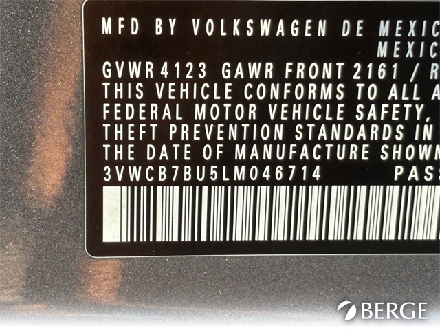 Serving The Valley For Over 40 Years! This Volkswagen Jetta is equipped with the following features: Storm Gray/Black Premium Synthetic, 17" Twin 5-Spoke Alloy Wheels, 4 Speakers, 4-Wheel Disc Brakes, ABS brakes, Air Conditioning, Alloy wheels, AM/FM radio, Automatic temperature control, Brake assist, Bumpers: body-color, Delay-off headlights, Driver door bin, Driver vanity mirror, Dual front impact airbags, Dual front side impact airbags, Electronic Stability Control, Emergency communication system: VW Car-Net services (capabilities require enrollment or subscription), Exterior Parking Camera Rear, First Aid Kit, Front anti-roll bar, Front Bucket Seats, Front Center Armrest, Front dual zone A/C, Front fog lights, Front reading lights, Front wheel independent suspension, Fully automatic headlights, Heated door mirrors, Heated Front Comfort Seats, Heated front seats, Heavy Duty Trunk Liner w/VW CarGo Blocks, Illuminated entry, Leather Shift Knob, Low tire pressure warning, Monster Mats w/Logo Rubber Mats Kit (Set of 4), Occupant sensing airbag, Outside temperature display, Overhead airbag, Overhead console, Panic alarm, Passenger door bin, Passenger vanity mirror, Perforated V-Tex Leatherette Seat Trim, Power door mirrors, Power moonroof, Power steering, Power windows, Radio data system, Radio: Composition Color w/6.5" Touchscreen, Rear anti-roll bar, Rear reading lights, Rear seat center armrest, Rear window defroster, Remote keyless entry, Roadside Assistance Kit, Speed control, Speed-sensing steering, Split folding rear seat, Steering wheel mounted audio controls, Tachometer, Telescoping steering wheel, Tilt steering wheel, Traction control, Trip computer, Variably intermittent wipers, and VW App-Connect (w/Apple CarPlay, Android Auto & MirrorLink)