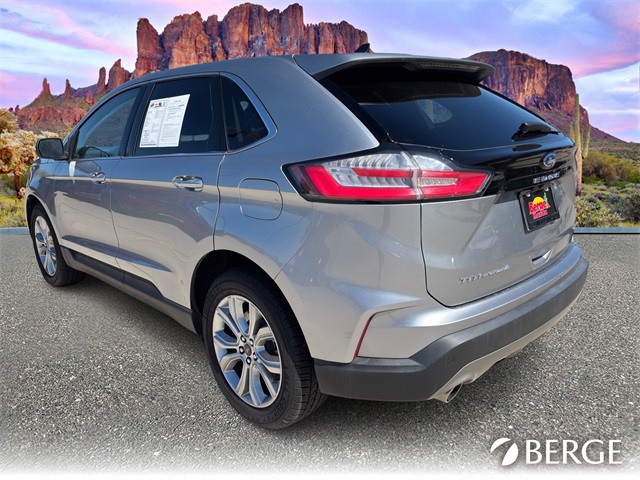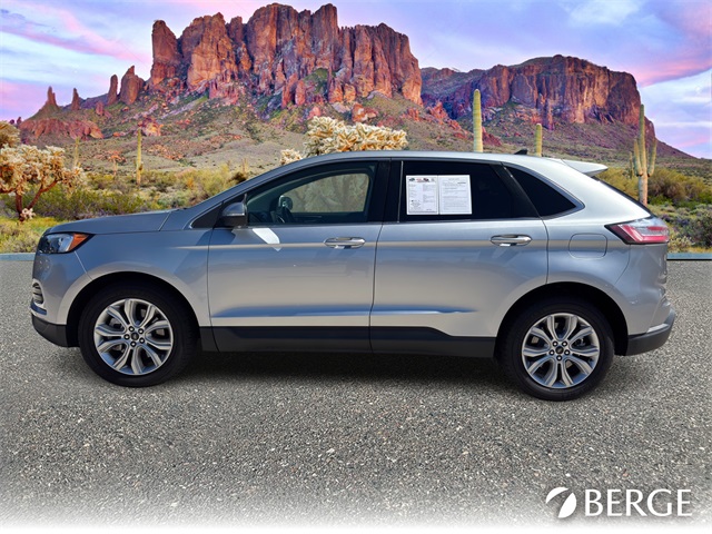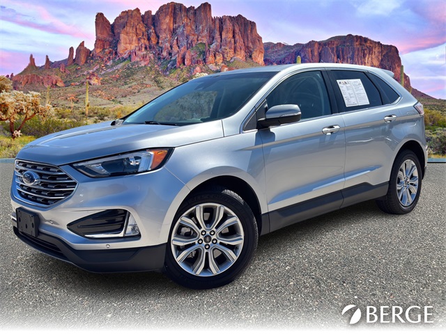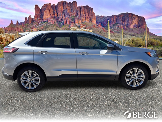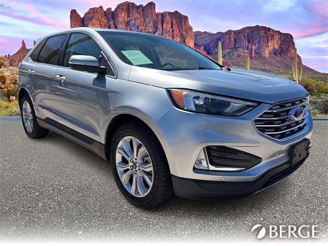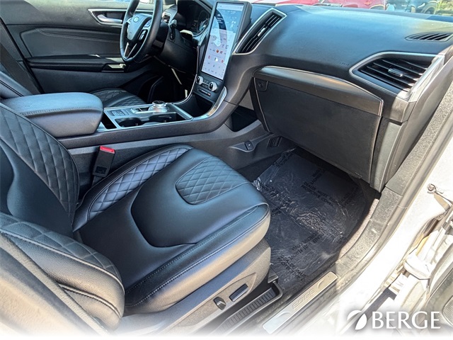 Serving The Valley For Over 40 Years! This Ford Edge is equipped with the following features: Equipment Group 300A, AWD, 12 Speakers, 3.80 Axle Ratio, 4-Wheel Disc Brakes, ABS brakes, ActiveX-Trimmed Heated Sport Bucket Seats, Air Conditioning, Alloy wheels, AM/FM radio: SiriusXM with 360L, Auto High-beam Headlights, Auto-dimming Rear-View mirror, Automatic temperature control, Brake assist, Bumpers: body-color, Compass, Delay-off headlights, Driver door bin, Driver vanity mirror, Dual front impact airbags, Dual front side impact airbags, Electronic Stability Control, Emergency communication system: SYNC 4 911 Assist, FordPass Connect, Four wheel independent suspension, Front anti-roll bar, Front Bucket Seats, Front Center Armrest w/Storage, Front dual zone A/C, Front fog lights, Front License Plate Bracket, Front reading lights, Fully automatic headlights, Garage door transmitter, Heated door mirrors, Heated front seats, Heated steering wheel, Illuminated entry, Knee airbag, Leather steering wheel, Low tire pressure warning, Memory seat, Occupant sensing airbag, Outside temperature display, Overhead airbag, Overhead console, Panic alarm, Passenger door bin, Passenger vanity mirror, Power door mirrors, Power driver seat, Power Liftgate, Power passenger seat, Power steering, Power windows, Radio: B&O Sound System by Bang & Olufsen, Rain sensing wipers, Rear anti-roll bar, Rear reading lights, Rear seat center armrest, Rear window defroster, Rear window wiper, Remote keyless entry, Security system, SiriusXM w/360L, Speed control, Speed-Sensitive Wipers, Split folding rear seat, Spoiler, Steering wheel mounted audio controls, SYNC 4A w/Enhanced Voice Recognition, Tachometer, Telescoping steering wheel, Tilt steering wheel, Traction control, Trip computer, Turn signal indicator mirrors, Variably intermittent wipers, and Wheels: 19" Luster Nickel-Painted Aluminum.