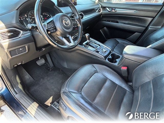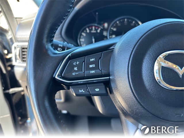 Serving The Valley For Over 40 Years! This Mazda CX-5 is equipped with the following features: 10 Speakers, 4-Wheel Disc Brakes, 4.624 Axle Ratio, ABS brakes, Air Conditioning, Alloy wheels, AM/FM radio: SiriusXM, AppLink/Apple CarPlay and Android Auto, Auto High-beam Headlights, Auto-dimming Rear-View mirror, Automatic temperature control, Brake assist, Bumpers: body-color, Delay-off headlights, Driver door bin, Driver vanity mirror, Dual front impact airbags, Dual front side impact airbags, E911 Automatic Emergency Notification, Electronic Stability Control, Emergency communication system: MAZDA CONNECT, Exterior Parking Camera Rear, Four wheel independent suspension, Front anti-roll bar, Front Bucket Seats, Front Center Armrest w/Storage, Front dual zone A/C, Front reading lights, Fully automatic headlights, Garage door transmitter: HomeLink, Heated door mirrors, Heated Front Bucket Seats, Heated front seats, Illuminated entry, Infotainment System Voice Command, Leather Seat Trim, Leather Shift Knob, Low tire pressure warning, Memory seat, Multifunction Commander Control, Occupant sensing airbag, Outside temperature display, Overhead airbag, Overhead console, Pandora, Panic alarm, Passenger door bin, Passenger vanity mirror, Power door mirrors, Power driver seat, Power Liftgate, Power moonroof, Power passenger seat, Power steering, Power windows, Radio Broadcast Data System Program Information, Radio data system, Radio: AM/FM/HD Audio System, Rain sensing wipers, Rear anti-roll bar, Rear reading lights, Rear seat center armrest, Rear window defroster, Rear window wiper, Remote keyless entry, SMS Text Msg Audio Delivery & Reply, Speed control, Speed-sensing steering, Split folding rear seat, Spoiler, Steering wheel mounted audio controls, Tachometer, Telescoping steering wheel, Tilt steering wheel, Traction control, Trip computer, Turn signal indicator mirrors, Variably intermittent wipers, and Wheels: 19" x 7J Aluminum Alloy.