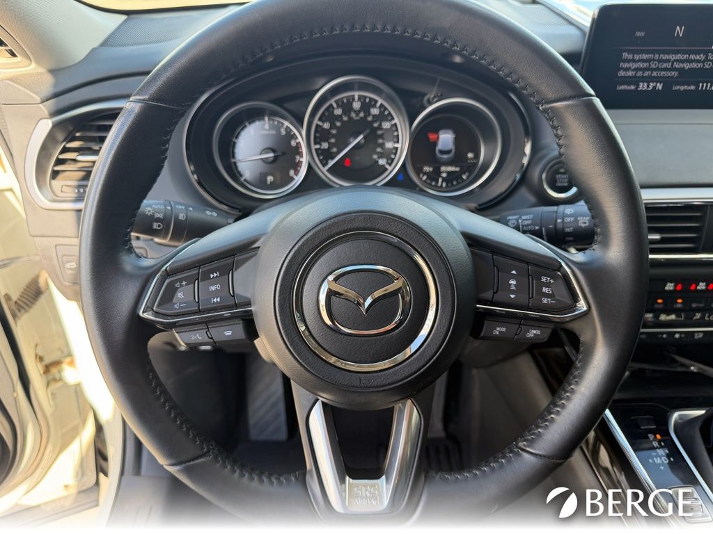 Serving The Valley For Over 40 Years! This Mazda CX-9 is equipped with the following features: Cargo Net & Side Storage Nets Package, AWD, 3rd row seats: bench, 4-Wheel Disc Brakes, 4.411 Axle Ratio, 6 Speakers, ABS brakes, Air Conditioning, Alloy wheels, AppLink/Apple CarPlay and Android Auto, Auto High-beam Headlights, Auto-dimming Rear-View mirror, Automatic temperature control, Brake assist, Bumpers: body-color, Compass, Delay-off headlights, Driver door bin, Driver vanity mirror, Dual front impact airbags, Dual front side impact airbags, E911 Automatic Emergency Notification, Electronic Stability Control, Emergency communication system: MAZDA CONNECT, Exterior Parking Camera Rear, Four wheel independent suspension, Front anti-roll bar, Front Bucket Seats, Front Center Armrest, Front dual zone A/C, Front fog lights, Front reading lights, Fully automatic headlights, Garage door transmitter: HomeLink, Heated 2nd-Row Captain's Chairs, Heated door mirrors, Heated front seats, Heated/Ventilated Front Bucket Seats, Illuminated entry, Infotainment System Voice Command, Leather Seat Trim, Leather Shift Knob, Leather steering wheel, Low tire pressure warning, Mazda Connected Services, Memory seat, Occupant sensing airbag, Outside temperature display, Overhead airbag, Overhead console, Pandora Internet Radio Integration, Panic alarm, Passenger door bin, Passenger vanity mirror, Power door mirrors, Power driver seat, Power Liftgate, Power moonroof, Power passenger seat, Power steering, Power windows, Radio Broadcast Data System Program Information, Radio data system, Radio: AM/FM Sound System, Rain sensing wipers, Rear air conditioning, Rear anti-roll bar, Rear reading lights, Rear seat center armrest, Rear window defroster, Rear window wiper, Remote keyless entry, SMS Text Msg Audio Delivery & Reply, Snowflake White Pearl Mica Paint, Speed control, Speed-sensing steering, Split folding rear seat, Spoiler, Steering wheel mounted audio controls, Tachometer, Telescoping steering wheel, Tilt steering wheel, Traction control, Trip computer, Turn signal indicator mirrors, Variably intermittent wipers, Ventilated front seats, and Wheels: 20" x 8.5J Aluminum Alloy.