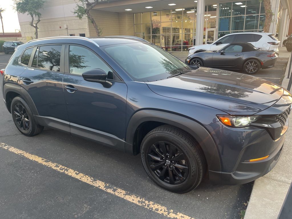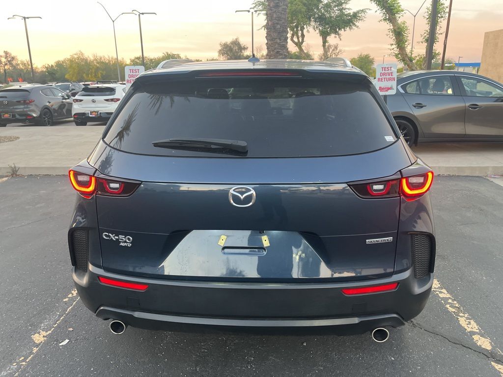 Serving The Valley For Over 40 Years! This Mazda CX-50 is equipped with the following features: 12 Speakers, 4-Wheel Disc Brakes, 4.367 Axle Ratio, ABS brakes, Air Conditioning, Alloy wheels, AM/FM radio: SiriusXM, AppLink/Apple CarPlay and Android Auto, Auto High-beam Headlights, Automatic temperature control, Brake assist, Bumpers: body-color, Delay-off headlights, Driver door bin, Driver vanity mirror, Dual front impact airbags, Dual front side impact airbags, Electronic Stability Control, Emergency communication system: MAZDA CONNECT, Exterior Parking Camera Rear, Front anti-roll bar, Front Bucket Seats, Front Center Armrest, Front dual zone A/C, Front reading lights, Front wheel independent suspension, Fully automatic headlights, Half Leatherette Seat Trim, Heated door mirrors, Heated Front Bucket Seats, Heated front seats, Illuminated entry, Knee airbag, Leather Shift Knob, Leather steering wheel, Low tire pressure warning, Occupant sensing airbag, Outside temperature display, Overhead airbag, Overhead console, Panic alarm, Passenger door bin, Passenger vanity mirror, Power door mirrors, Power driver seat, Power Liftgate, Power moonroof, Power steering, Power windows, Radio data system, Radio: AM/FM/HD Audio System, Rain sensing wipers, Rear seat center armrest, Rear window defroster, Rear window wiper, Remote keyless entry, Speed control, Speed-sensing steering, Split folding rear seat, Spoiler, Steering wheel mounted audio controls, Tachometer, Telescoping steering wheel, Tilt steering wheel, Traction control, Trip computer, Turn signal indicator mirrors, Variably intermittent wipers, and Wheels: 17" x 7J Aluminum Alloy.