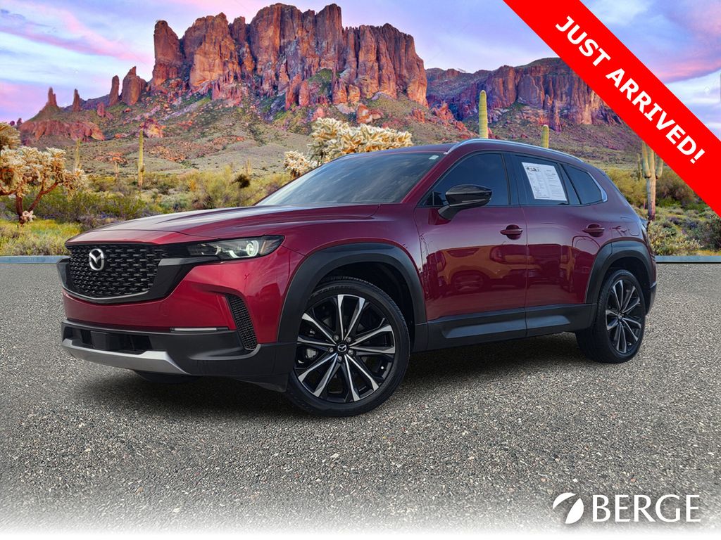 Serving The Valley For Over 40 Years! This Mazda CX-50 is equipped with the following features: Cargo Package (Cargo Blocks), 12 Speakers, 20" x 8J Aluminum Alloy Wheels, 3.841 Axle Ratio, 4-Wheel Disc Brakes, ABS brakes, Air Conditioning, Alloy wheels, AM/FM radio: SiriusXM, AppLink/Apple CarPlay and Android Auto, Auto High-beam Headlights, Auto-dimming Rear-View mirror, Automatic temperature control, Brake assist, Bumpers: body-color, Delay-off headlights, Driver door bin, Driver vanity mirror, Dual front impact airbags, Dual front side impact airbags, Electronic Stability Control, Emergency communication system: MAZDA CONNECT, Exterior Parking Camera Rear, Front anti-roll bar, Front Bucket Seats, Front Center Armrest, Front dual zone A/C, Front reading lights, Front wheel independent suspension, Fully automatic headlights, Garage door transmitter: HomeLink, Heads-Up Display, Heated & Ventilated Front Bucket Seats, Heated door mirrors, Heated front seats, Heated steering wheel, Illuminated entry, Knee airbag, Leather Seat Trim, Leather Shift Knob, Leather steering wheel, Low tire pressure warning, Memory seat, Occupant sensing airbag, Outside temperature display, Overhead airbag, Overhead console, Panic alarm, Passenger door bin, Passenger vanity mirror, Power door mirrors, Power driver seat, Power Liftgate, Power moonroof, Power passenger seat, Power steering, Power windows, Radio data system, Radio: AM/FM/HD Audio System, Rain sensing wipers, Rear seat center armrest, Rear window defroster, Rear window wiper, Remote keyless entry, Retractable Cargo Cover, Soul Red Crystal Metallic Paint Charge, Speed control, Speed-sensing steering, Split folding rear seat, Spoiler, Steering wheel mounted audio controls, Tachometer, Telescoping steering wheel, Tilt steering wheel, Traction control, Trip computer, Turn signal indicator mirrors, Variably intermittent wipers, and Ventilated front seats.