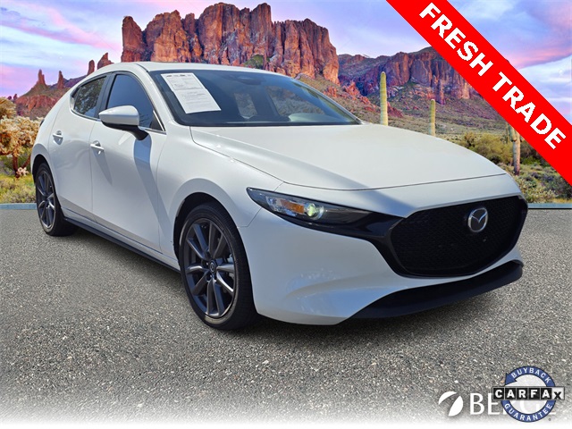 Serving The Valley For Over 40 Years! This Mazda Mazda3 is equipped with the following features: 4-Wheel Disc Brakes, 6 Speakers, ABS brakes, Air Conditioning, Alloy wheels, AM/FM radio, AppLink/Apple CarPlay and Android Auto, Auto High-beam Headlights, Automatic temperature control, Brake assist, Bumpers: body-color, Compass, Delay-off headlights, Driver door bin, Driver vanity mirror, Dual front impact airbags, Dual front side impact airbags, Electronic Stability Control, Emergency communication system: Mazda Connected Services (3-year complimentary trial included), Exterior Parking Camera Rear, Front anti-roll bar, Front Bucket Seats, Front Center Armrest, Front dual zone A/C, Front reading lights, Front wheel independent suspension, Fully automatic headlights, Heated door mirrors, Heated Front Bucket Seats, Heated front seats, Illuminated entry, Knee airbag, Leather Shift Knob, Leather steering wheel, Leatherette Seat Trim, Low tire pressure warning, MAZDA CONNECT Infotainment System, Memory seat, Occupant sensing airbag, Outside temperature display, Overhead airbag, Overhead console, Panic alarm, Passenger door bin, Passenger vanity mirror, Power door mirrors, Power driver seat, Power moonroof, Power steering, Power windows, Radio data system, Radio: AM/FM Audio System, Rain sensing wipers, Rear seat center armrest, Rear side impact airbag, Rear window defroster, Rear window wiper, Remote keyless entry, Snowflake White Pearl Mica Paint Charge, Speed control, Speed-sensing steering, Split folding rear seat, Spoiler, Steering wheel mounted audio controls, Tachometer, Telescoping steering wheel, Tilt steering wheel, Traction control, Trip computer, Turn signal indicator mirrors, Variably intermittent wipers, and Wheels: 18" x 7J Aluminum Alloy.