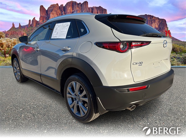 Serving The Valley For Over 40 Years! This Mazda CX-30 is equipped with the following features: Mazda Certified Pre-Owned Certified, 12 Speakers, 4-Wheel Disc Brakes, ABS brakes, Aero Gray Paint Charge, Air Conditioning, Alloy wheels, AM/FM radio: SiriusXM, AppLink/Apple CarPlay and Android Auto, Auto High-beam Headlights, Automatic temperature control, Brake assist, Bumpers: body-color, Cargo Cover, Compass, Delay-off headlights, Driver door bin, Driver vanity mirror, Dual front impact airbags, Dual front side impact airbags, Electronic Stability Control, Emergency communication system: Mazda Connected Services (3-year trial subscription included), Exterior Parking Camera Rear, Front & Rear Splash Guards, Front anti-roll bar, Front Bucket Seats, Front Center Armrest, Front dual zone A/C, Front reading lights, Front wheel independent suspension, Fully automatic headlights, Heads-Up Display, Heated door mirrors, Heated Front Bucket Seats, Heated front seats, High Wall All-Weather Floor Mats, Illuminated entry, Knee airbag, Leather Seat Trim, Leather Shift Knob, Leather steering wheel, Low tire pressure warning, MAZDA CONNECT Infotainment System, Memory seat, Navigation system: MAZDA CONNECT, Occupant sensing airbag, Outside temperature display, Overhead airbag, Overhead console, Panic alarm, Passenger door bin, Passenger vanity mirror, Power door mirrors, Power driver seat, Power Liftgate, Power moonroof, Power steering, Power windows, Radio data system, Radio: AM/FM/HD Audio w/Mazda Online Navigation, Rain sensing wipers, Rear seat center armrest, Rear side impact airbag, Rear window defroster, Rear window wiper, Remote keyless entry, Speed control, Speed-sensing steering, Split folding rear seat, Spoiler, Steering wheel mounted audio controls, Tachometer, Telescoping steering wheel, Tilt steering wheel, Traction control, Trip computer, Turn signal indicator mirrors, Variably intermittent wipers, and Wheels: 18" x 7J Aluminum Alloy.