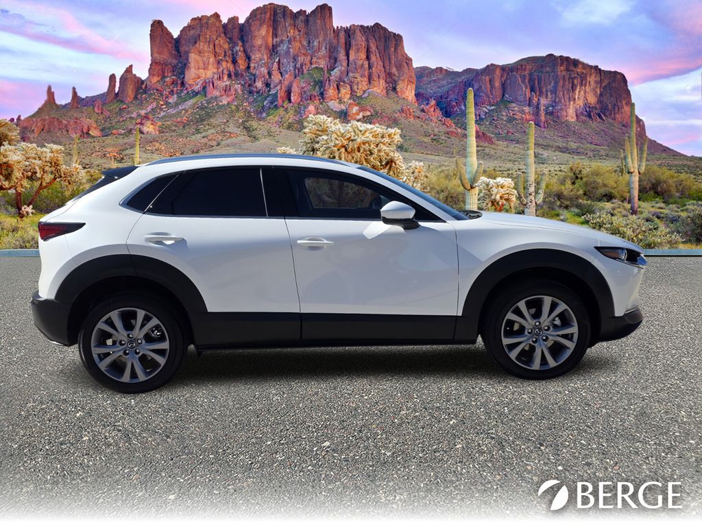 Serving The Valley For Over 40 Years! This Mazda CX-30 is equipped with the following features: Mazda Certified Pre-Owned Certified, 12 Speakers, 4-Wheel Disc Brakes, ABS brakes, Air Conditioning, Alloy wheels, AM/FM radio: SiriusXM, AppLink/Apple CarPlay and Android Auto, Auto High-beam Headlights, Automatic temperature control, Brake assist, Bumpers: body-color, Compass, Delay-off headlights, Driver door bin, Driver vanity mirror, Dual front impact airbags, Dual front side impact airbags, Electronic Stability Control, Emergency communication system: Mazda Connected Services (3-year trial subscription included), Exterior Parking Camera Rear, Front anti-roll bar, Front Bucket Seats, Front Center Armrest, Front dual zone A/C, Front reading lights, Front wheel independent suspension, Fully automatic headlights, Heads-Up Display, Heated door mirrors, Heated Front Bucket Seats, Heated front seats, Illuminated entry, Knee airbag, Leather Seat Trim, Leather Shift Knob, Leather steering wheel, Low tire pressure warning, MAZDA CONNECT Infotainment System, Memory seat, Navigation system: MAZDA CONNECT, Occupant sensing airbag, Outside temperature display, Overhead airbag, Overhead console, Panic alarm, Passenger door bin, Passenger vanity mirror, Power door mirrors, Power driver seat, Power Liftgate, Power moonroof, Power steering, Power windows, Radio data system, Radio: AM/FM/HD Audio w/Mazda Online Navigation, Rain sensing wipers, Rear seat center armrest, Rear side impact airbag, Rear window defroster, Rear window wiper, Remote keyless entry, Snowflake White Pearl Mica Paint Charge, Speed control, Speed-sensing steering, Split folding rear seat, Spoiler, Steering wheel mounted audio controls, Tachometer, Telescoping steering wheel, Tilt steering wheel, Traction control, Trip computer, Turn signal indicator mirrors, Variably intermittent wipers, Wheel Locks, and Wheels: 18" x 7J Aluminum Alloy.
