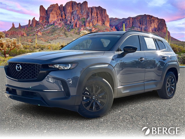 Serving The Valley For Over 40 Years! This Mazda CX-50 Hybrid is equipped with the following features: Cargo Package (Cargo Blocks), Mazda Certified Pre-Owned Certified, 2.5L 4-Cylinder, 12 Speakers, 4-Wheel Disc Brakes, ABS brakes, Air Conditioning, Alloy wheels, AM/FM radio: SiriusXM, AppLink/Apple CarPlay and Android Auto, Auto High-beam Headlights, Auto-dimming Rear-View mirror, Automatic temperature control, Black Lug Nuts & Black Wheel Locks, Brake assist, Bumpers: body-color, Delay-off headlights, Driver door bin, Driver vanity mirror, Dual front impact airbags, Dual front side impact airbags, Electronic Stability Control, Emergency communication system: MAZDA CONNECT, Exterior Parking Camera Rear, Front anti-roll bar, Front Bucket Seats, Front Center Armrest, Front dual zone A/C, Front reading lights, Front wheel independent suspension, Fully automatic headlights, Heated door mirrors, Heated front seats, Heated Front Seats w/3 Level Adjustment, Illuminated entry, Knee airbag, Leather Seat Trim, Leather Shift Knob, Leather steering wheel, Low tire pressure warning, Memory seat, Occupant sensing airbag, Outside temperature display, Overhead airbag, Overhead console, Panic alarm, Passenger door bin, Passenger vanity mirror, Polymetal Gray Metallic Paint Charge, Power door mirrors, Power driver seat, Power Liftgate, Power moonroof, Power passenger seat, Power steering, Power windows, Radio data system, Radio: AM/FM/HD Bose 12-Speaker Audio Sound System, Rain sensing wipers, Rear seat center armrest, Rear window defroster, Rear window wiper, Remote keyless entry, Speed control, Speed-sensing steering, Split folding rear seat, Spoiler, Steering wheel mounted audio controls, Tachometer, Telescoping steering wheel, Tilt steering wheel, Traction control, Trip computer, Turn signal indicator mirrors, Variably intermittent wipers, and Wheels: 17" x 7J Black Metallic Finish Alloy.