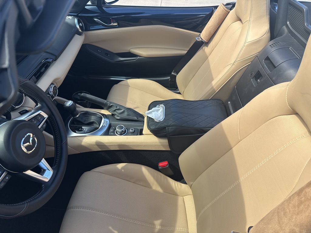 Serving The Valley For Over 40 Years! This Mazda MX-5 Miata is equipped with the following features: 17" x 7" aluminum alloy wheels with black metallic finish, 4-Wheel Disc Brakes, 9 Speakers, ABS brakes, Air Conditioning, Alloy wheels, AM/FM radio: SiriusXM, AppLink/Apple CarPlay and Android Auto, Auto High-beam Headlights, Auto-dimming door mirrors, Auto-dimming Rear-View mirror, Automatic temperature control, bose audio system with audiopilot, Brake assist, Bumpers: body-color, Convertible roof lining, Convertible roof wind blocker, Delay-off headlights, Driver vanity mirror, Dual front impact airbags, Dual front side impact airbags, Electronic Stability Control, Emergency communication system: MAZDA CONNECT, Exterior Parking Camera Rear, Four wheel independent suspension, Front anti-roll bar, Front Bucket Seats, Front Center Armrest, Fully automatic headlights, Garage door transmitter: HomeLink, Glass rear window, Heated door mirrors, heated front bucket seats, Heated front seats, Illuminated entry, Leather Shift Knob, leather upholstery, Low tire pressure warning, MAZDA CONNECT Infotainment system, Nappa leather upholstery, Navigation System, Occupant sensing airbag, Outside temperature display, Panic alarm, Passenger vanity mirror, Power door mirrors, Power steering, Power windows, Radio data system, Rain sensing wipers, Rear anti-roll bar, Rear window defroster, Remote keyless entry, Speed control, Speed-sensing steering, Sport steering wheel, Steering wheel mounted audio controls, Tachometer, tan Nappa leather charge, Telescoping steering wheel, Tilt steering wheel, Traction control, Trip computer, and Variably intermittent wipers.
